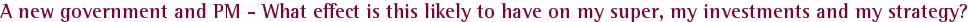 The reality is that they are (hopefully) both somewhat inaccurate. Labor has been in self-destruct mode since 2010 with internal fighting, and Australia is apparently only now ‘open for business’, but what actual effect is all this likely to have on the economy and investment markets? At the risk of further offending almost everyone, the answer is a lot less than is expected from the blue corner and nowhere near as bad as expected from the red corner.